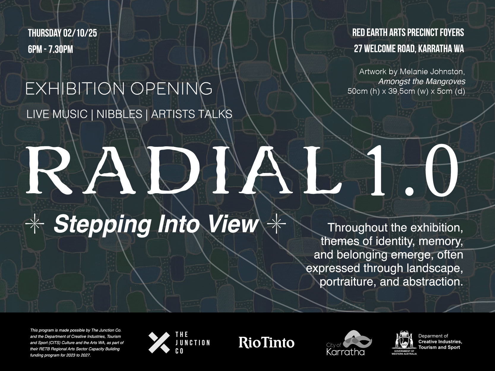 Join us in celebrating the launch of Radial 1.0 - Stepping into View, a vibrant new exhibition showcasing emerging and early-career artists from across the Pilbara and Gascoyne.